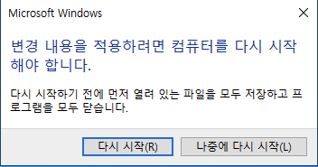 시스템 속성창을 열고 "변경(C)" 을 클릭합니다.