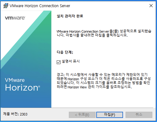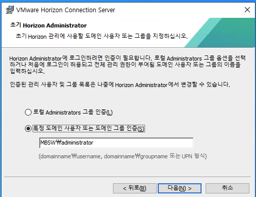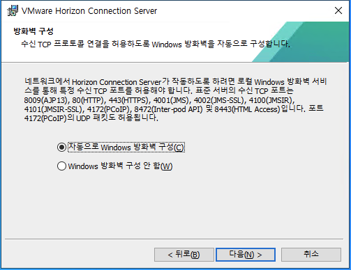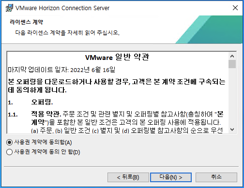 Horizon Connection Server 설치 프로그램을 실행하면 보이는 마법사 입니다.