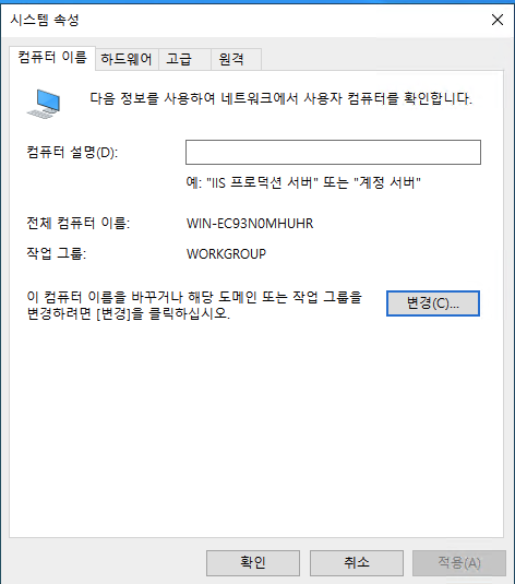 컴퓨터 이름은 변경하지않으셔도됩니다.