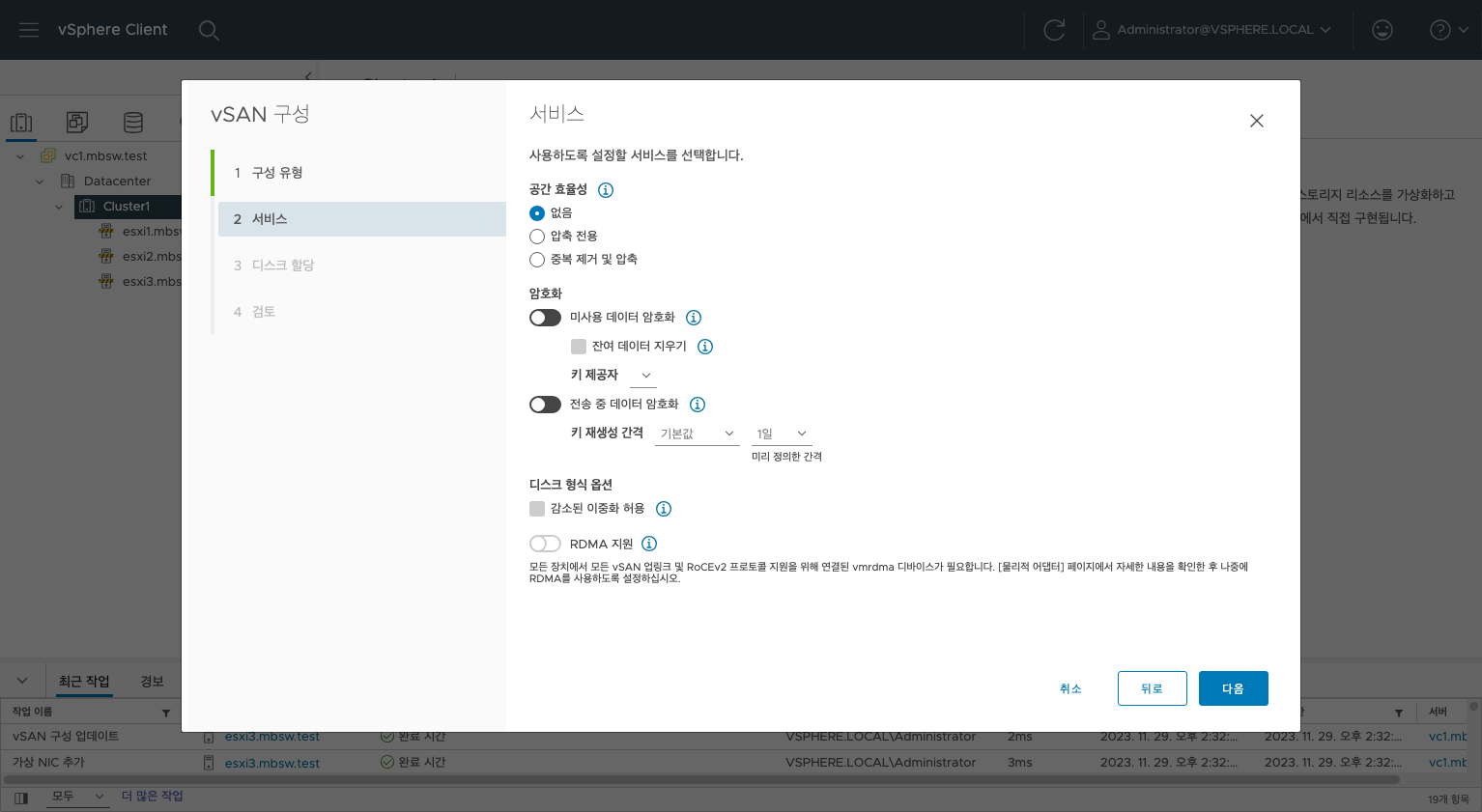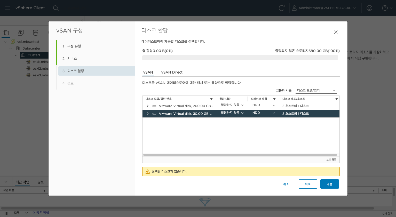 이번엔 vSphere의 vSAN을 구축하는 방법을 알아보았습니다.