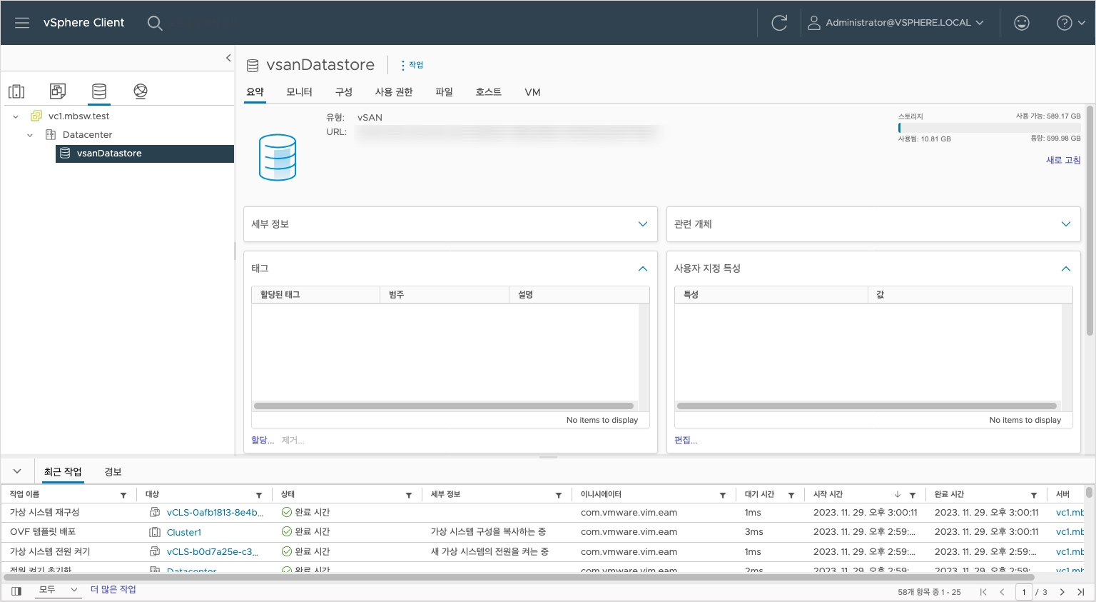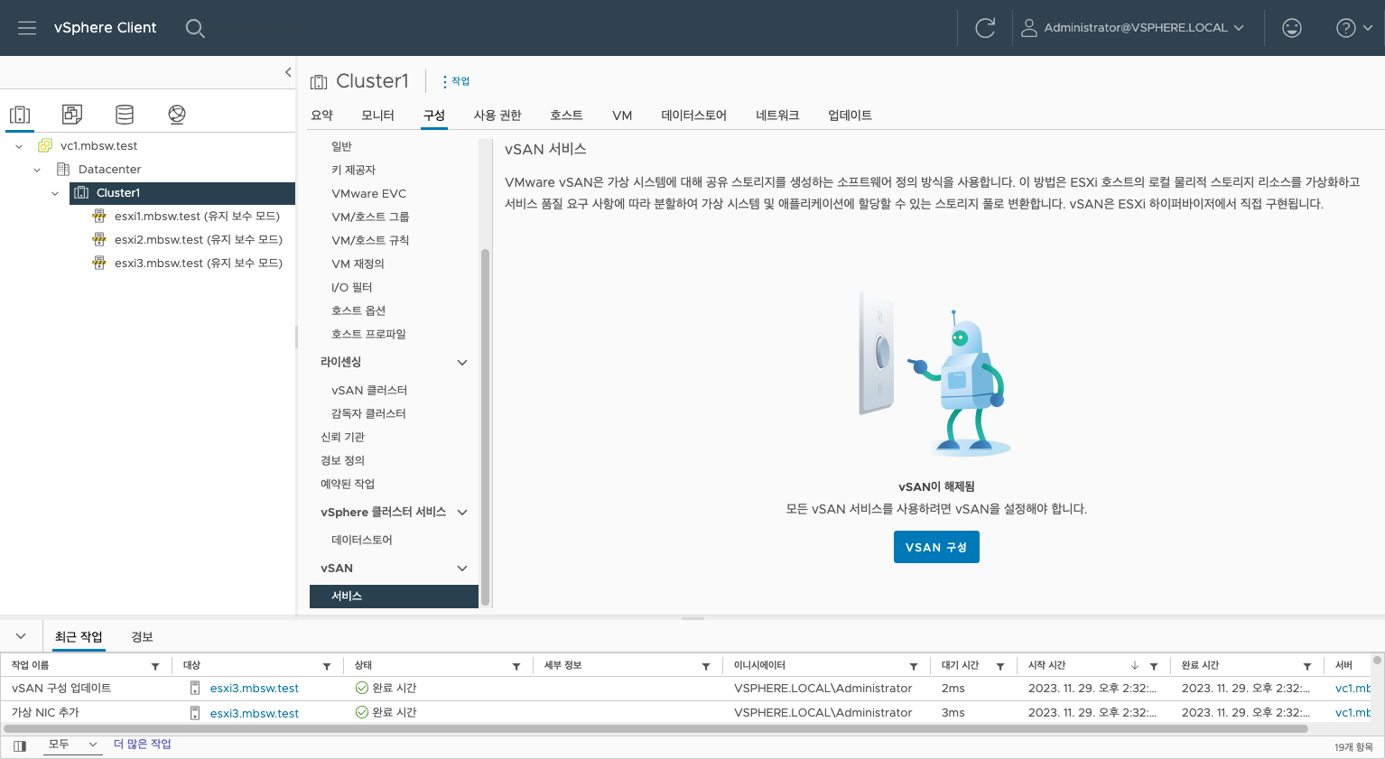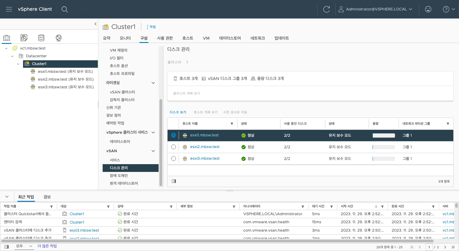 vSAN이 정상적으로 구성되었습니다.