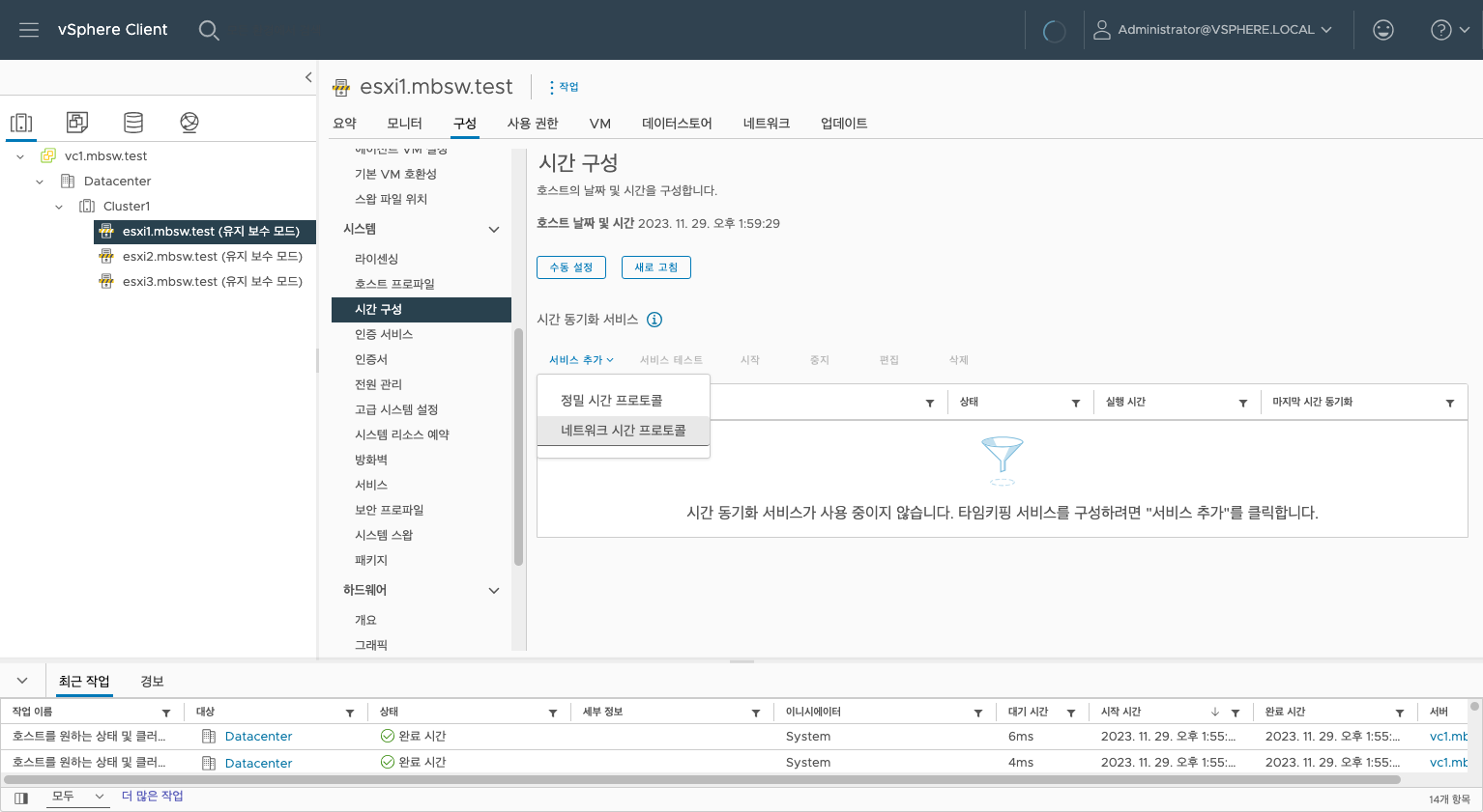 호스트를 클릭하여 구성 -> 시스템 - 시간 구성 을 클릭합니다.