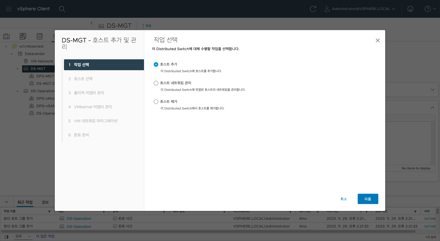 이번엔 vDS로 진행해보겠습니다.