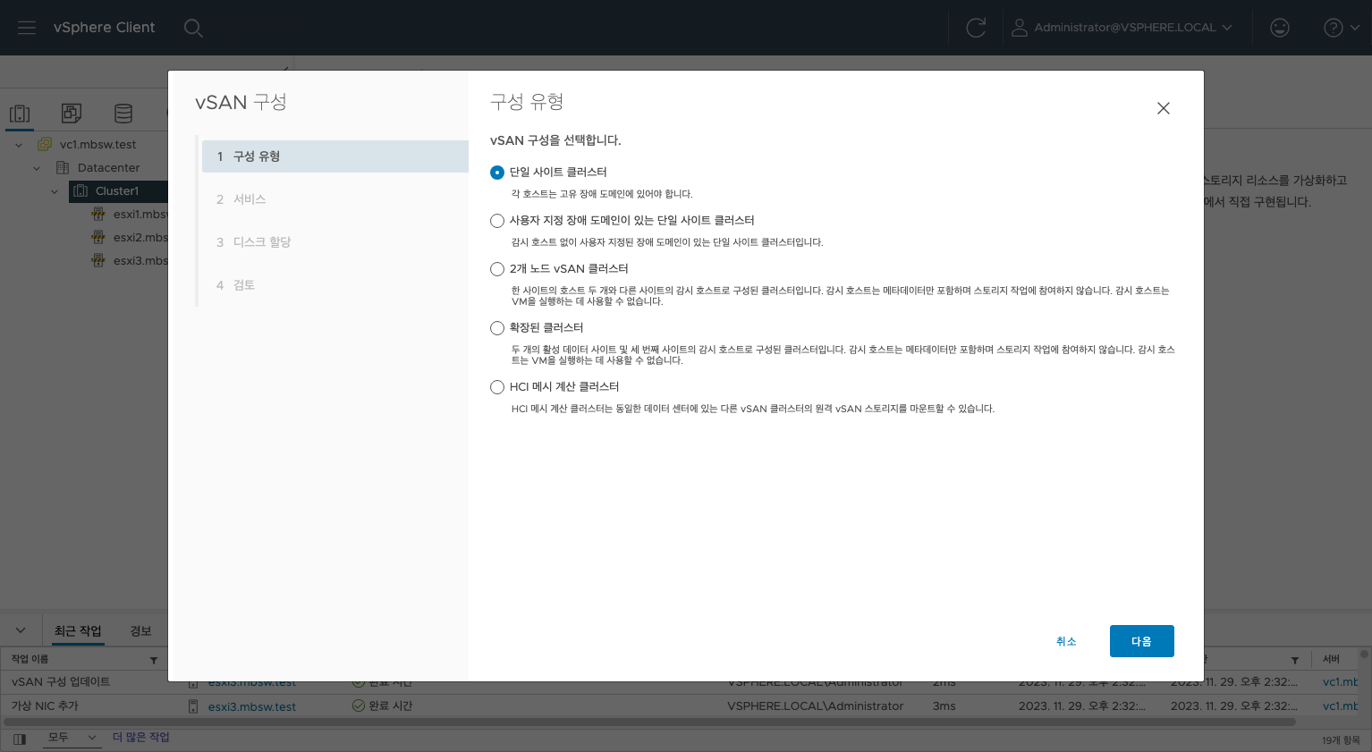 이번엔 vSphere의 vSAN을 구축하는 방법을 알아보았습니다.
