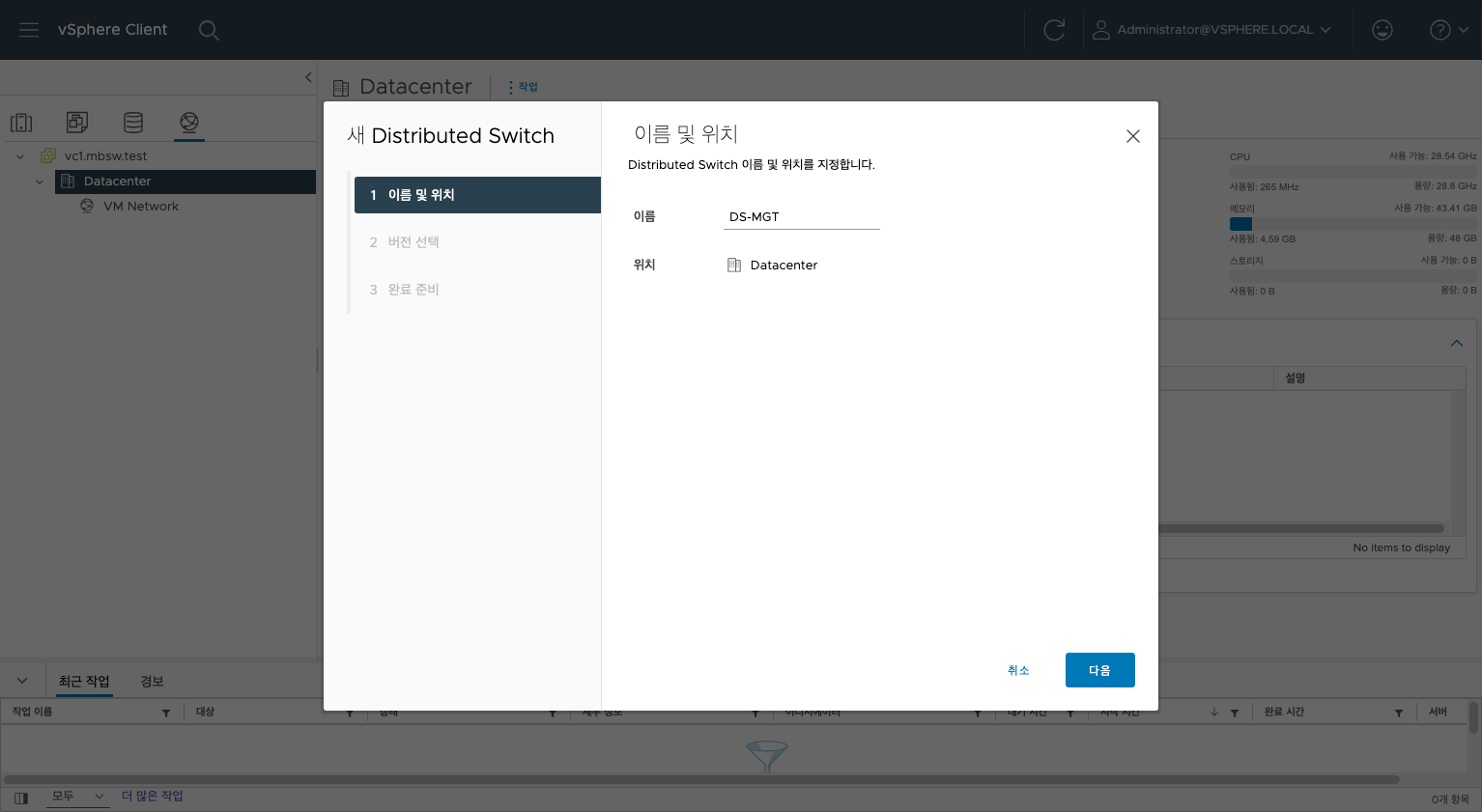 이번엔 vDS로 진행해보겠습니다.