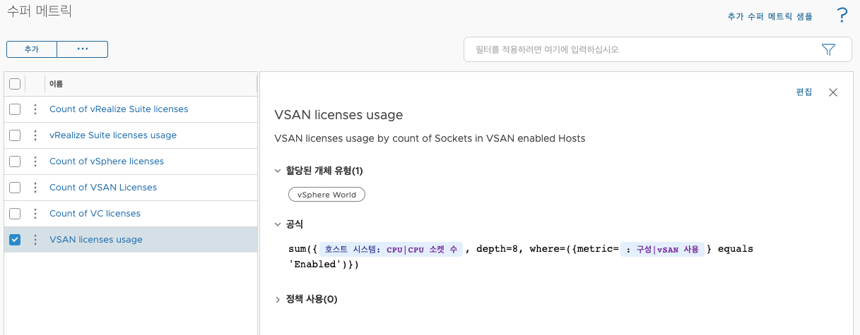 수퍼 메트릭에 대한 VMware Blog 링크입니다.(2020년도 자료이긴하지만 수퍼메트릭의 공식을 참고하는데 좋을거같습니다.)